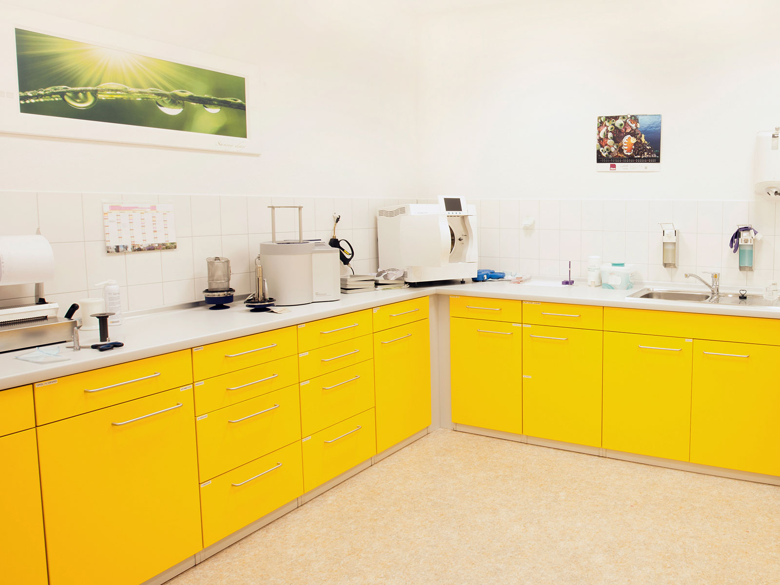 Blick in unseren Steri-Raum: Moderne Geräte und unser Qualitätsmangement entsprechend den RKI-Richtlinien sorgen für optimalen Schutz.